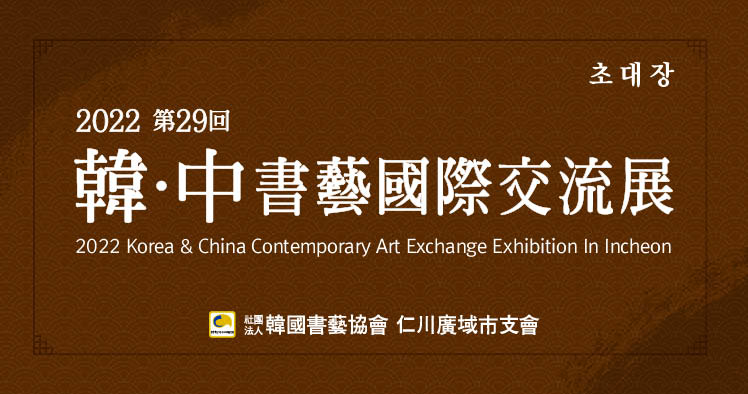 (사)한국서예협회 인천광역시지회(지회장 한규식)가 2022년 제29회 한.중서예국제교류전을 갖습니다.