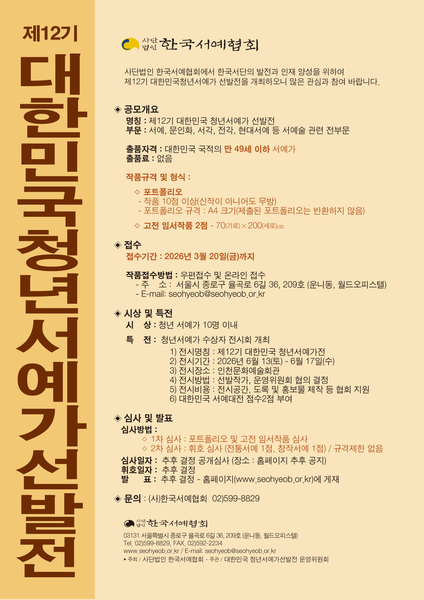 제12기 대한민국청년서예가선발전 공모요강
